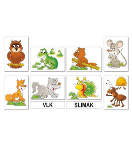 Koho můžeme potkat v lese? Veverku? Sovu? Podle obrázků poznáváme zvířata žijící v lese a na louce. Texty v českém...
