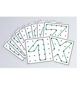Pracovní karty podložíte pod průsvitný Geoboard a pracujete podle předlohy od jednoduchých vzorů po náročné.