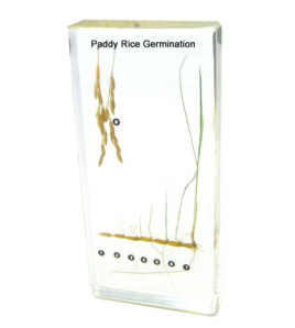 Model znázorňující vývoj zrnka rýže, akrylátový hranol, rozměr: 164x78x20 mm.