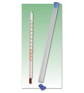 Teploměr ze skla do 100 stupňů v plastové tubě s uzávěrem.