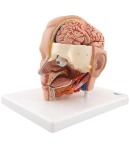 Model hlavy v životní velikosti, složený ze šesti částí, odhaluje a umožňuje odnímat mozek s arteriemi a oční bulvu s...