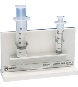 Poznání principu hydraulického lisu. Model se skládá ze dvou injekčních stříkaček o objemu 20ml a 60ml upevněných na...