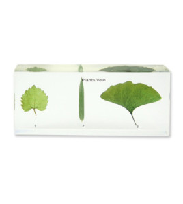 Model - Žilnatina listů rostlin - 3 typy v akrylátovém kvádru.