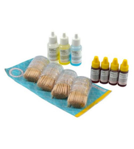Náhradná sada na určovanie krvných skupín AB0/Rh. Študenti testujú a určujú krvné skupiny AB0/Rh štyroch rôznych...