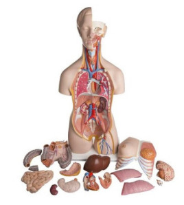 24-dílné torzo s oddělitelnou hlavou, 2 plicní laloky, srdce (2 části), žaludek, játra se žlučníkem, kompletní střeva...