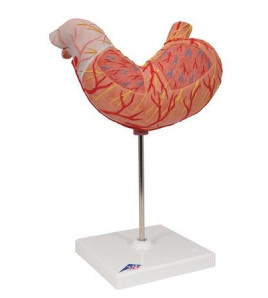 Model žaludku zobrazuje vrstvy žaludeční stěny. Přední polovina je odnímatelná. Zobrazuje: dolní jícen, cévy a nervy....