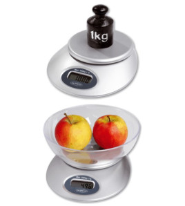 Univerzální digitální váha do 5kg s přesností vážení na 1g. Průměr váhy 20cm, vrchní plotýnka 13cm. Dodáváno se 2...