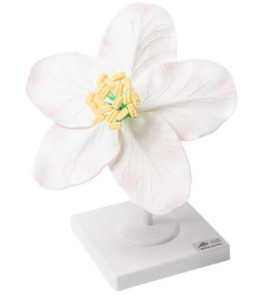 Model zobrazuje 5 okvětních lístků a sady tyčinek. Bílé lístky s jemným nádechem růžové, což květu dodává reálnost....