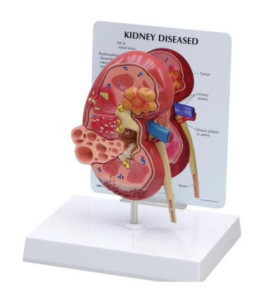 Model lidské ledviny s onemocněním. Model na podstavci.