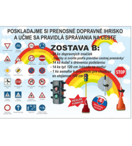 Poskládejte si přenosné dopravní hřiště a učme se pravidla chování na cestě. Semafor, 12 ks dopravních značek a cesta...