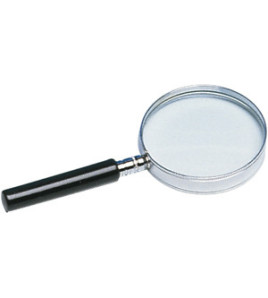Zvětšení 3x, čočka: sklo, kovový rám, plastová rukojeť, průměr 50mm.
