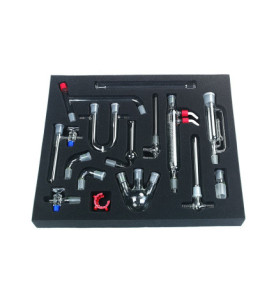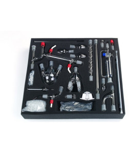 Sada laboratorního skla pro sestavení destilační soupravy. Bez stativové soupravy.