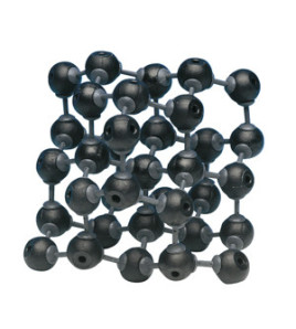 Průměr atomu 23mm; 30ks kuliček - atomů uhlíku, 40ks šedých spojovacích tyček.