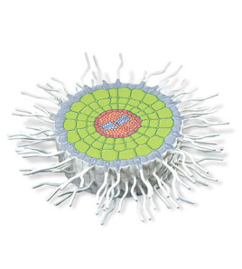 Model ukazuje absorpční oblasti dvoukličných rostlin - kořene hořčice bílé.