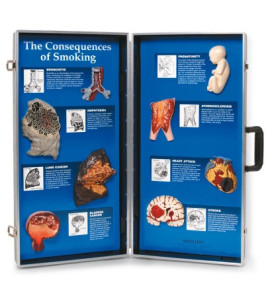 Podrobné tabule s modely, které jasně ukazují důsledky kouření na naše orgány. Panely jsou uloženy v přenosném...