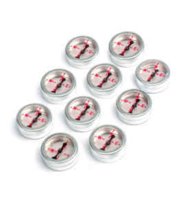 10 ks magnetických kompasů v hliníkovém obalu o průměru 19 mm.