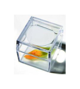 Průsvitná nádoba s lupou výborná pro pozorování hmyzu, minerálů nebo různých malých drobností.