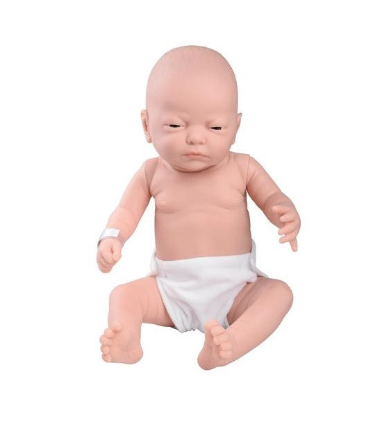 Figurína pro nácvik základní péče o novorozence - oblékání, svlékání, koupání a vyměňování plenek. Velice realistický model vypadá jako živé miminko, má pohyblivé klouby a pootevřené oči. Dodává se bez oblečení, s 1 dětskou plenou. Figurína má velikost skutečného novorozence (délka 50 cm) a lze ji obléct do běžných dětských šatů.