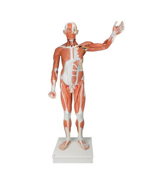 37-dílný model svalstva muže v životní velikosti ukazuje hloubkové a povrchové svalstvo. Složení: lebka, 6 částí mozku, oční bulva, prs a břišní stěna, obě paže, 2 části hrtanu, 2 plíce, 2-dílné srdce, bránice, 2-dílný žaludek, játra, žlučník, ledvina, celá střevní systém, polo měchýře, 2-dílný penis, 10 svalů. 53 kg, 180x110x50 cm.