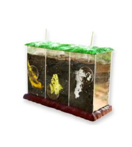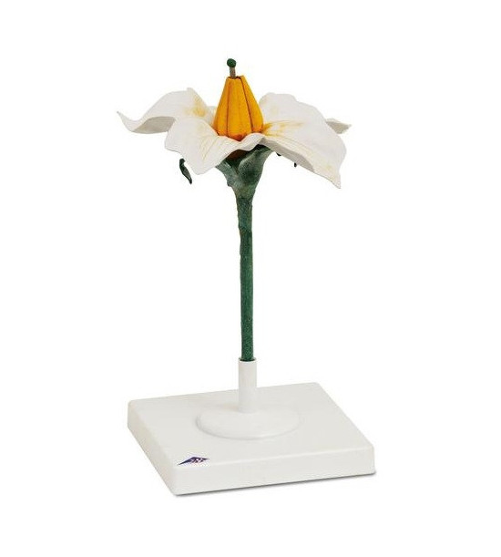 Model květu brambora zvětšená 8násobná velikost, 2-dílný model. Brambor se obvykle dělí na dva stonky, z nichž každá má několik květin. Okvětí je radiálně symetrické, vyznačené žlutými linkami. 5 lupínků, 5 kališních lístků, 5 sad tyčinek jsou v okvětí poskládány v úhlech Fibonacciho posloupnosti. Práškově lakovaná barva představuje pyl, v případě znečištění rukou se snadno myje. Rozměry 18x18x35 cm, hmotnost 1 kg. Vzhledem ke křehkosti modelu se cena dopravy kalkuluje individuálně.