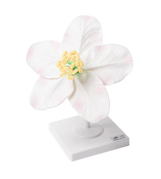 Květ jabloně je příkladem Fibonacciho posloupnosti (číslo 5), je radiální, pětipraslenovitý a pětidílný. Pět kališních lístků tvoří vnitřní korunu, vedle nich je 5 okvětních lístků, květenství a tyčinky. Zaoblené bílé listy jsou tónovány růžovým nádechem pro realistický vzhled. 5násobně zvětšený model, rozměry: 25x23x40 cm, hmotnost 1 kg. Vzhledem ke křehkosti modelu se cena dopravy kalkuluje individuálně.