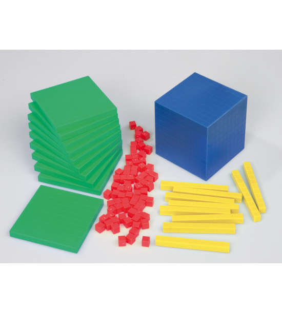 Pomůcka, která názorně učí žáky desítkovou soustavu, číselné řady, zaokrouhlování, prostorové vnímání a podobně. Jednotlivé díly jsou spojovatelné a tak desítku můžete vytvořit z jednotek, stovku z desítek nebo tisícovku ze stovek. Obsah dodávky: 100 - jednotek (kostek) / 1cm krychlový, 10 - desítek (obdélníků), 10 - stovek (tabulek), 1 - tisíc (velká kostka) / 1dm krychlový.