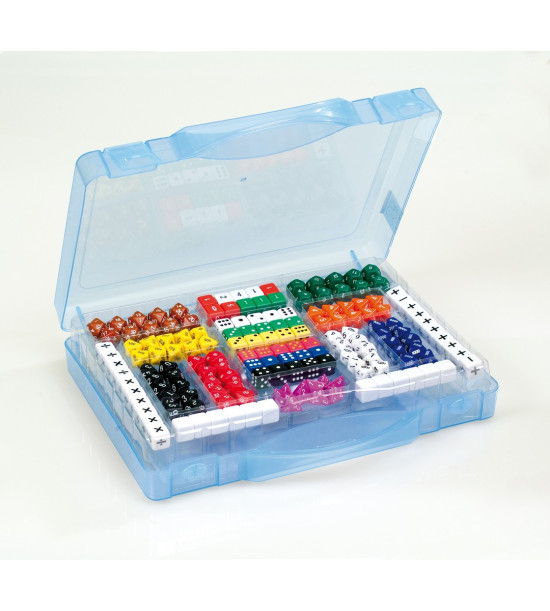 Plný kufřík barevných kostek pro procvičování matematických operací. Různé typy kostek nabízejí spoustu možností pro skupinovou práci. Obsah: 162ks kostek s čísly, symboly, tečkami v plastovém kufříku.