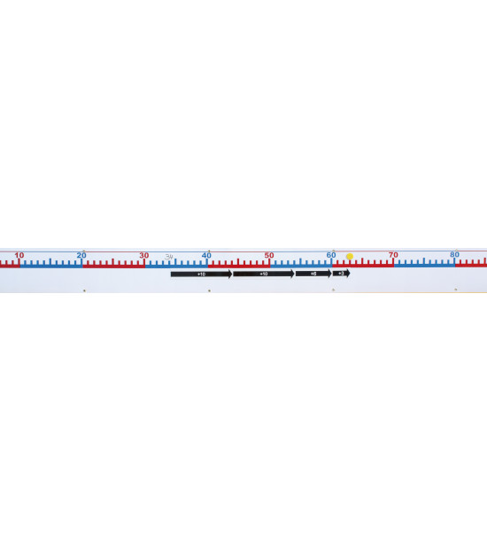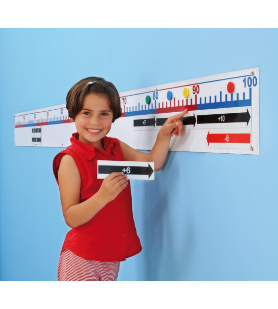 Široká a přehledná magnetická číselná osa, která po připevnění na zeď, nabízí možnost vizuálně ztvárňovat aritmetické příklady a výpočty za pomoci magnetických šipek a kroužků. Dítě přímo sleduje výpočet a řešení příkladu. Šipky s čísly jsou vytištěny oboustranně na magnetické pásce. Červené šipky s čísly z jedné strany jsou určeny k odečtení a černé šipky s čísly z opačné strany ke sčítání. Pro přímé popisování číselného pásu využijte stíratelný fix. Obsah dodávky: - 1 magnetická číselná osa/délka 3m, - 39 magnetických oboustranných šipek s čísly, - 38 magnetů (30ks průměr 2cm, 8ks průměr 3cm), - opatřena otvory pro zavěšení, - šrouby jsou součástí balení.
