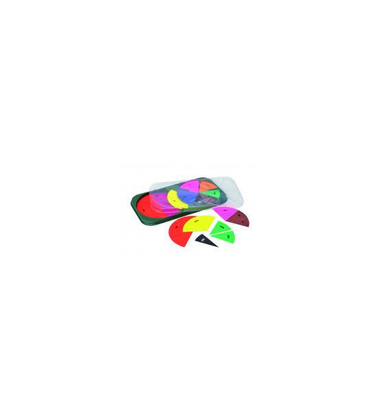 Pomůcka, pomocí které vyjádříte vztah mezi desetinnými čísly a procenty. Jednotlivé výseky kruhu jsou potlačeny na obou stranách - na jedné straně desetinném číslem, na druhé straně odpovídajícím procentuálním podílem.