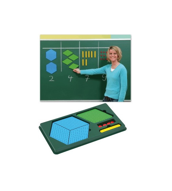 Magnetická souprava pro snazší pochopení desítkové soustavy ve 3D barevném zobrazení, uložená v plastu a zabalená v krabici. Obsah: - 25 jednotek, - 12 desítek (10+2 extra), - 12 stovek (10+2 extra), - 5 tisíc.