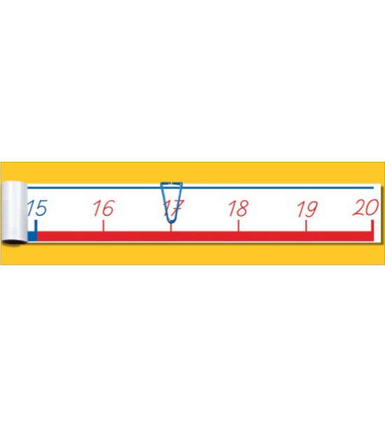 Tato velká nástěnná číselná osa je vyrobena z tenkého odolného plastu a je dodávána spolu s velkými plastovými spinkami (10 červených a 10 modrých) pro vyznačení čísel. Délka číselné osy je 2m, šířka pasu je 9cm.