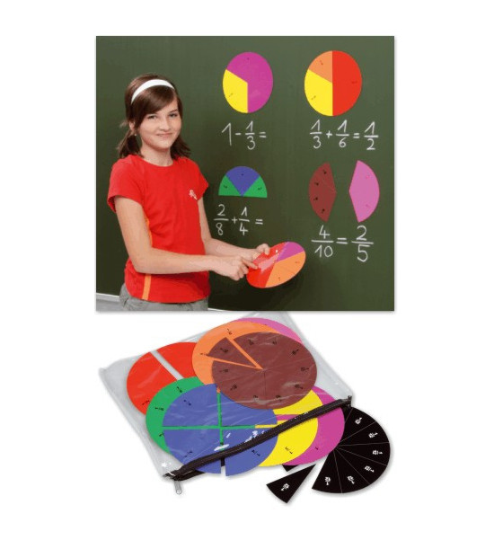 Velké magnetické zlomky o průměru kruhu 20cm. Výborná pomůcka k demonstraci příkladů na matematice pro učitele a žáky. 9 kruhů je rozděleno na: 1/2, 1/3, 1/4, 1/5, 1/6, 1/8, 1/10, 1/12 a 1/1. Baleno v plastové tašce.