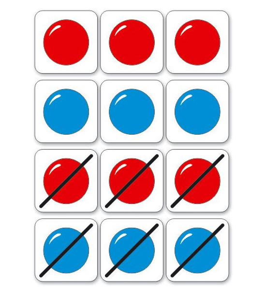 Názorná pomůcka pro vyvozování základního učiva v prvním ročníku: znázornění čísla, porovnávání počtu, sčítání, odčítání a další procvičování učiva. 1 sada - 40ks obrázků + 2 náhradní kartičky. Obsah: 10ks magnetické obrázky - tečky červené / 9 x 9cm / pevný karton 2mm 10ks magnetické obrázky - tečky červené, škrtnuté / 9 x 9cm / pevný karton 2mm 10ks magnetické obrázky - tečky modré / 9 x 9cm / pevný karton 2mm 10ks magnetické obrázky - tečky modré, přeškrtnuté / 9 x 9cm / pevný karton 2mm Kartonová krabice.