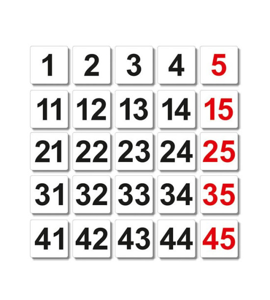 Důležitá pomůcka pro jednodušší představu a orientaci v číselné řadě 0 až 100. Využití na plastové tabuli. Oboustranné černo/červené kartičky s čísly, doplněné čistými kartičkami pro řešení různých numerických příkladů. Obsah: 105ks oboustranné magnetic. kartičky / 4,7 x 4,7cm / 2mm pevný karton Dodáváno v kartonové krabici.