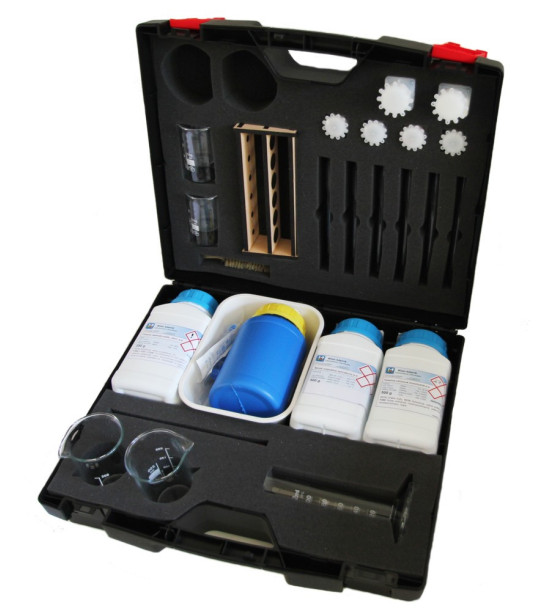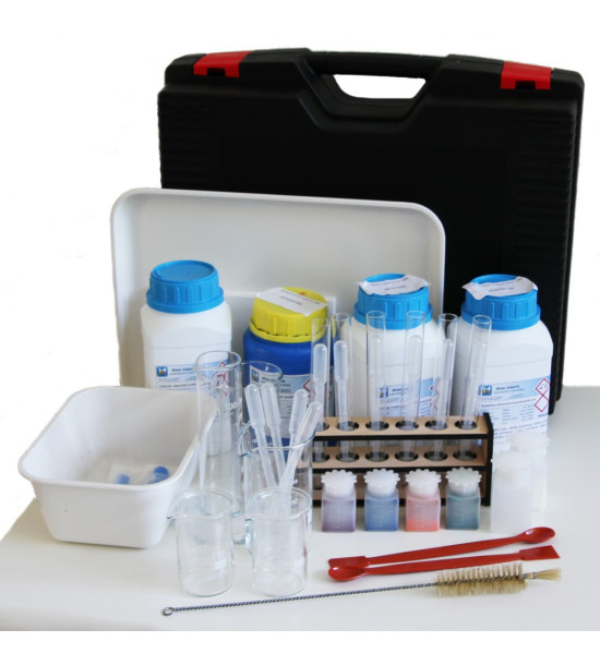 Jedinečná učební pomůcka, vyrobená na míru pro malé objevitele a výzkumníky. Kufřík obsahuje základní laboratorní vybavení a spotřební materiál pro provedení minimálně 15 bezpečných pokusů. Obsah kufříku: 6x kádinky, 1x odměrný válec, 2x lžičky, 10x pipetky, 2x stříkačky, 2x misky, 6x zkumavky, 10x filtrační papíry, 1x kartáček, 1x stojan na zkumavky, chemikálie.