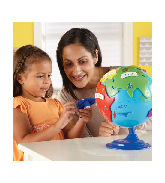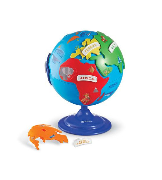 Barevný glóbus s vyjímatelnými kontinenty je skvělou pomůckou při základech geografie. Podporuje zájem o geografii již od útlého věku. Na každém dílku je vyobrazena typická historická památka a zvíře žijící v dané oblasti. Je vhodný pro sólovou i skupinovou hru. Otáčí se o 360 stupňů. Obsahuje: 6 kontinentů, 6 kontinentálních značek. Průměr: 20 cm.