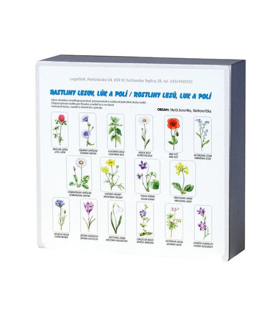 Poznáváme a rozlišujeme rostliny lesů, luk a polí. Soubor magnetických obrázků umožňuje poznávat, pojmenovávat a rozlišovat jednotlivé druhy rostlin, chápat význam rostlin pro život člověka a umět o ně pečovat. Vnímat jejich krásu, neničit a chránit je v přírodě. Obsah: 4ks magnetické ilustrované obrázky / 18 x 13,5 cm / pevný karton 2mm 12ks magnetické ilustrované obrázky / 18 x 9cm / pevný karton 2mm Kartonová krabice.