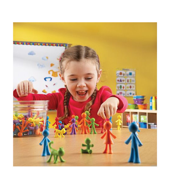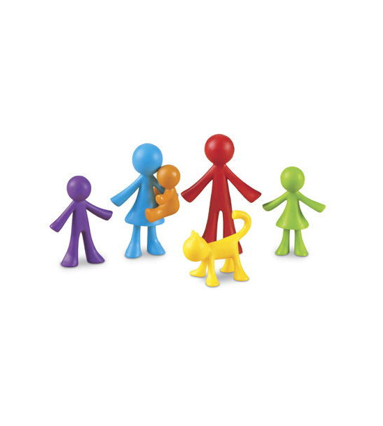 Sada postaviček, která pomáhá dětem poznat své postavení v rodině. Perfektní pro třídění a počítání. Dodává se v 6 různých barvách, zahrnuty jsou osoby i zvířátka. Nejvyšší figurka měří 6 cm. Sada obsahuje malé části, nevhodné pro děti do 3 let.