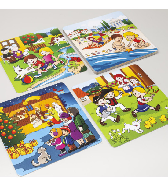 Představujeme vám jedinečný velký didaktický kalendář pro děti o rodině a událostech v ní. Události, zvyky a rituály jsou v životě rodiny velmi důležité. Budují vzájemnou blízkost, soužití, vytvářejí tradice a obohacují náš život. U dětí jsou spojeny s radostným očekáváním a prožíváním něčeho pěkného. Pomůcku tvoří 10 velkých obrázků osobních událostí během roku. Každý obrázek je doplněn slovy, která při výuce napomohou vytvořit atmosféru upřímných rozhovorů s dětmi. Rozvíjí slovní zásobu, používání slov označujících předměty, jevy, pocity, události a činnosti, s nimiž se dítě běžně potýká v rodině. Obsah: Vánoce, Velikonoce, Oslava, Svatba, Den matek, Prázdniny, Dovolená, Jedeme do školy, Narození děťátka, Vzpomínka formát A3 / 29,7cm x 42cm / 11 listů - úvodní list + 10 listů s událostmi stojan pevný karton / 29 ,7cm x 45,8cm /