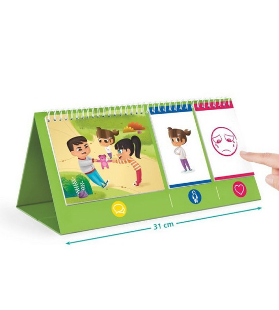 Pomocí této naučné hry se dítě vžije to pocitů postav na obrázcích a popíše, co cítí. Hra rozvíjí sociální dovednosti jako empatie, rozpoznávání emocí a pomáhá rozvíjet emocionální povědomí.