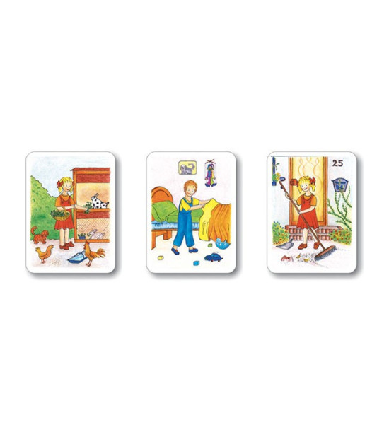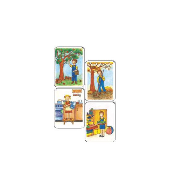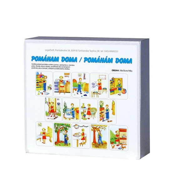 Soubor magnetických obrázků na téma pomoc, spolupráce a domácí práce. Rozvíjí slovní zásobu, používání slov označujících předměty, jevy a činnosti, s nimiž se dítě běžně potýká. Obsah: 14ks magnetické ilustrované obrázky / 18 x 13,5cm / pevný karton 2mm Kartonová krabice.