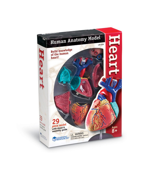 Detailně propracovaný anatomický model srdce. Při sestavování si děti vlastnoručně vybudují znalosti o fungování lidského těla. Jednotlivé části lze odstranit, pozorovat a namontovat zpět do jejich správných poloh. Sada obsahuje 29 částí. Součástí je stojan na vystavení a podrobný montážní návod s barevnými obrázky. Rozměry balení: 23×17×5 cm. Vhodné pro děti od 8 let.