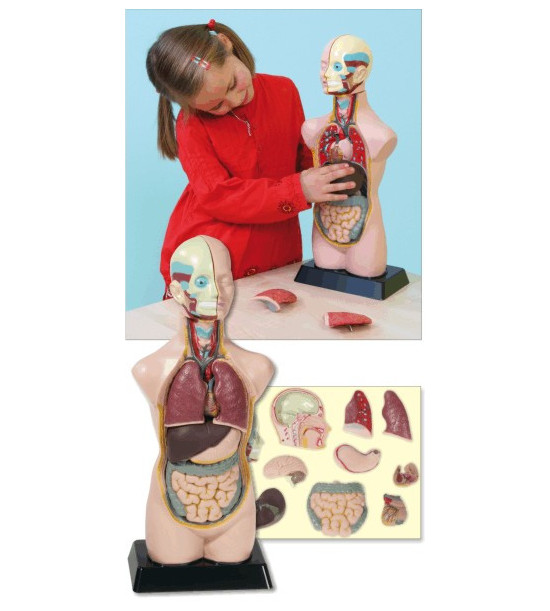 Hezký model torza lidského těla, vyrobený z odolného a trvanlivého plastu. Každý z 11 orgánů lze studovat samostatně. Hlavu lze rozdělit na 2 části. Výška torza 50cm.