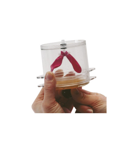 Demonstrace respiračních pohybů, snadné použití. Průhledný recipient (hrudní koš), jehož dno tvoří membrána (bránice), obsahuje 2 balony (plíce). Tlakem na membránu dochází k nafukování či vyfukování balonů propojených s vnějším prostředím trubicí ve tvaru Y (průdušky a průdušnice). Složení: průhledný recipient o průměru 8cm a výšce 8cm, kaučuková membrána, pryžová zátka s otvorem, 2 pryžové balóny. Dodává se rozložen.