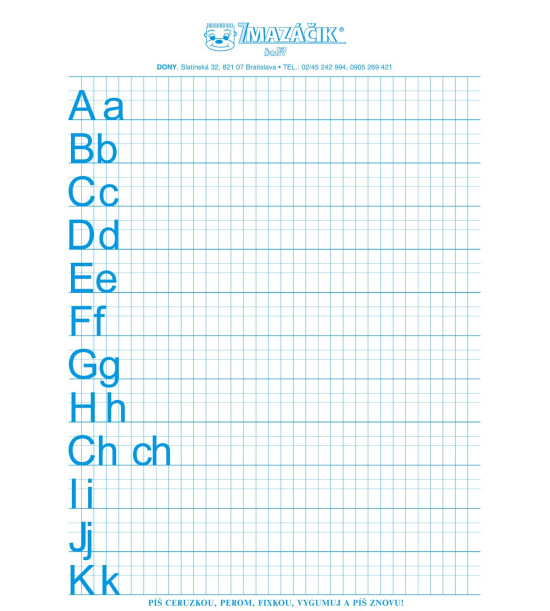 Na smazáčku Písmena psaná se děti mohou učit poznávat a psát písmena bez stresu, protože mohou nepovedený pokus jednoduše vygumovat. Později mohou na něm psát například diktáty.
