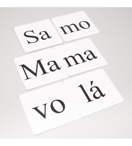 Didaktická pomůcka SLABIKY- pracovní karty je určena pro 1. ročník pro nácvik hlasitého čtení slabik. Slabiky jsou tvořeny z malých a velkých souhlásek M, S, L, V, J a krátkých a dlouhých samohlásek A, O, E, I, U, které se prváci učí ve škole během prvního pololetí. Karty můžete využít při různých aktivitách a hrách. Jejich rozměr 13,5 x 13,5 cm je vhodný do lehké kostky s kapsami, čímž se hravou formou znásobí počet aktivit k procvičování. Obsah: 100ks pracovní karty z kartonu / 13,5 x 13,5cm