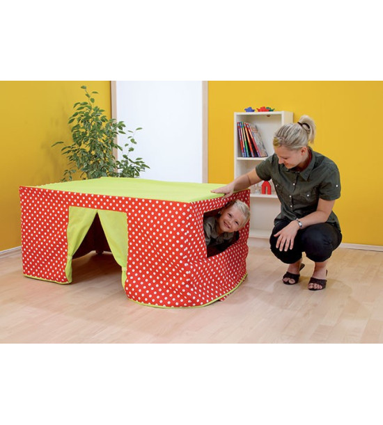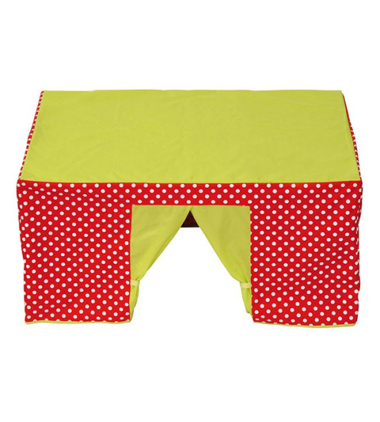 Vytvořte si tento krásný domeček pro veselou zábavu dětí. Má dvě rolovací okénka a vchod se závěsem, které pouhým uchopením po otevření upevníte. Vyrobeno z pevné látky ve veselých barvách. Vhodný na stůl o rozměru 120 x 80cm a výšce 52cm. Obsah: 1ks stolní stan / 120 x 80 x 52cm