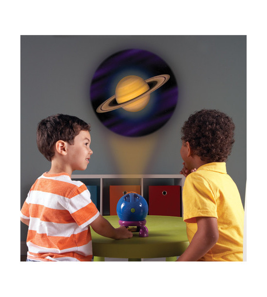 Díky projektoru budou mít malý vědci hvězdy jako na dlani. Projektor obsahuje 3 disky s obrázky planet, hvězd a jiných vesmírných jevů (celkem 24 obrázků). Disk stačí jednoduše vložit a vesmír se přenese na rovnou plochu před vámi. Baterie (3 x AAA) nejsou součástí balení. Projektor měří 12,5 cm.