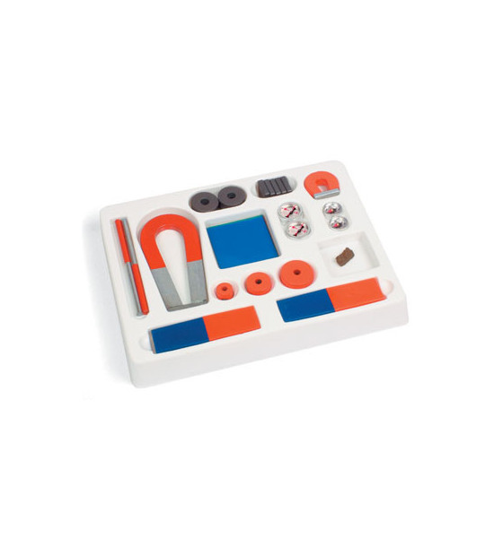 Různé druhy magnetů v jedné sadě umožňují provádět různé pokusy. Sada obsahuje pár tyčových magnetů, 2 kruhové magnety, magnet podkovu, magnetické střelky.