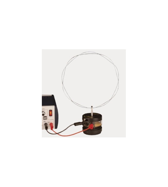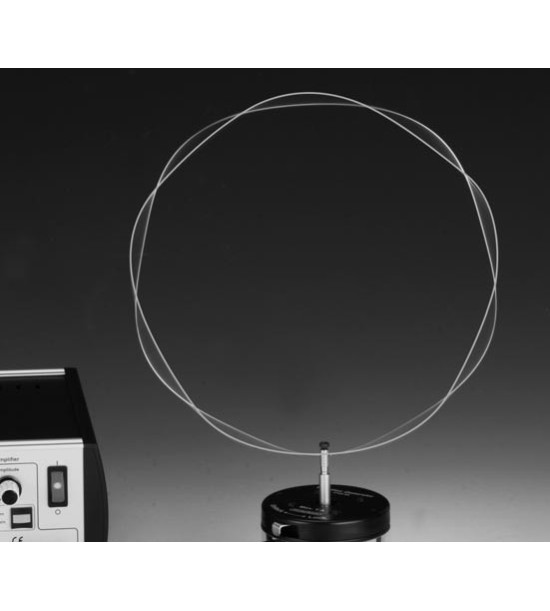 Rezonanční struna na elektromagnetický generátor vibrací pro vytváření vlnění ve strunách, pro zobrazení vztahu mezi frekvencí a počtem oscilačních uzlů. Drát je elastický, pevný a je vybaven 4 mm banánkovým konektorem do elektromagnetického generátoru vibrací, který když kmitá, kmitá i struna. Při určitých frekvencích vznikají stojaté vlny. Při vyšších frekvencích se počet vibračních uzlů a amplitud zvyšuje a lze nalézt souvislost mezi frekvencí a počtem uzlů. Struna může být také modelem energetické hladiny elektronu kolem jádra atomu (de Broglieho vlnová délka). Rozměry: průměr smyčky 250 – 290 mm, průměr struny 1 mm. Nutné příslušenství (není součást dodávky!): Elektromagnetický generátor vibrací a Generátor funkcí (řídí frekvenci).